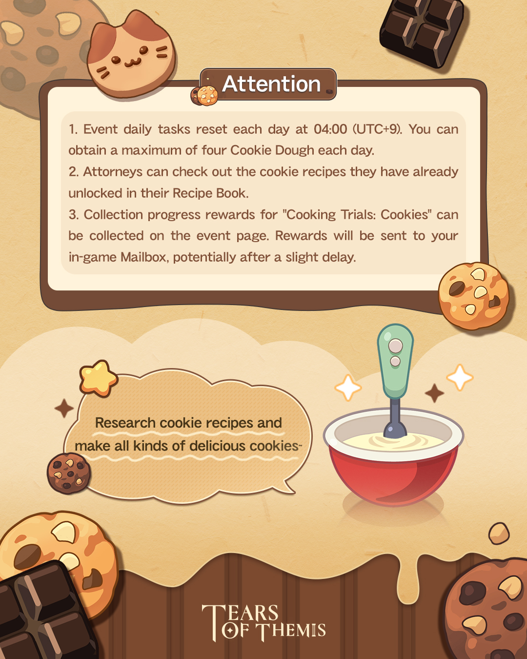 Tears Of Themis On Twitter Cooking Trials Cookies Event Preview Research Cookie Recipes And Make All Kinds Of Delicious Cookies Event Period 2022 3 11 11 00 3 21 04 00 Utc 9 View Details